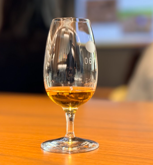 試飲会ではブレンダーがテイスティングで使用しているものと同じグラスで特別に試飲をさせていただきました。各グラスには番号が振られており、どのウイスキーかわかるようになっています。このようなプロフェッショナルな環境での試飲体験は、ウイスキーの違いや特徴をより深く味わうことができるものとなりました。