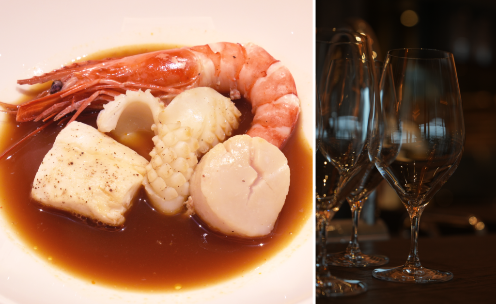 夜は一転、魚介の存在感を際立たせたアラカルトメニューへ。旬の鮮魚が贅沢に盛り込まれ、見た目にも華やかな一皿に。スープをベースにしたソースが素材の持ち味を引き立て、ワインとの相性も抜群です。
