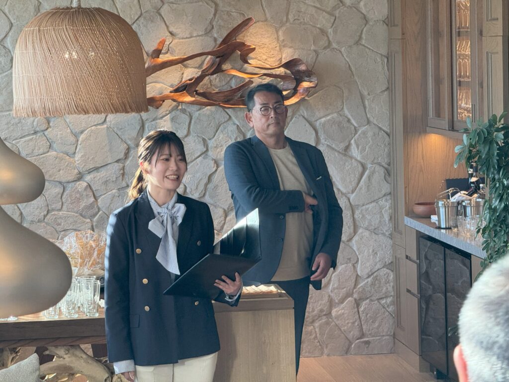 UMITOの展望についてご説明させていただいた後、ひらまつ本店の料理長として腕を振るった小川大樹シェフによるお料理や客室の内覧などお楽しみいただきました。
