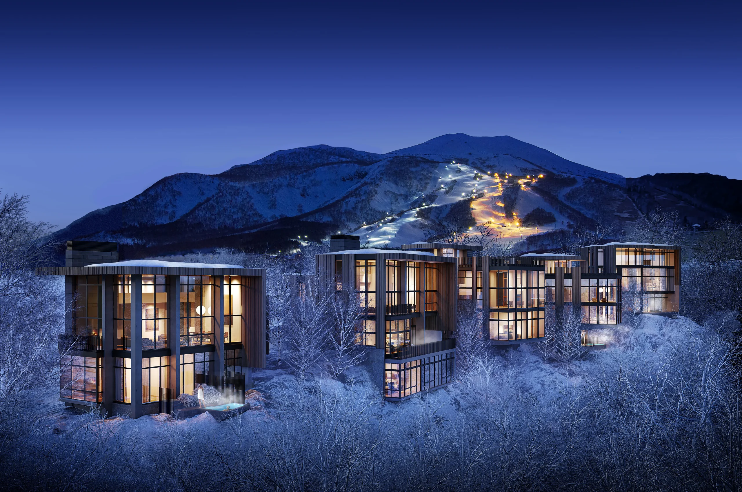 「建築に使う素材、インテリアも、建物の考え方と同じです。つまり、自然環境との調和が私たちの建築コンセントのキーになっていることは間違いありません。建設が進んでいるニセコを例に話しましょうか。ご存知のとおり、ニセコはウィンターリゾートとして名の知られた自然豊かな場所。冬はたくさんの雪が積もりますので、森、山、雪という自然環境をキーワードに素材や色を選定しました。外観は自然の森と調和するよう、風合い豊かな幅の異なる木材で構成しています。そこに、モダンな黒い窓枠でバランスをとりました。室内はオーク材の壁、天井、床、石など天然素材がふんだんに使われています。また、暖炉や温かみのある木の家具など、周囲の自然豊かな環境に添うような素材感にまとめました。とはいえ、ただ素朴な自然素材を使うのとは違います。素材とデザインの選択により、温かみのなかに軽やかさ、モダンさを感じられるように工夫しています。また、多くの人が利用するリゾートですから、照明の工夫などでフレンドリーな雰囲気も創り出すようにしています。天井が高くラグジュアリーでダイナミックな空間ではありますが、温かみのある柔らかな照明、カーテンなどの工夫によってウェルカミングな雰囲気を感じさせる。ラグジュアリーとウェルカミングとは相反するようですが、素材、照明、家具のセレクトで両立させることができるのです」