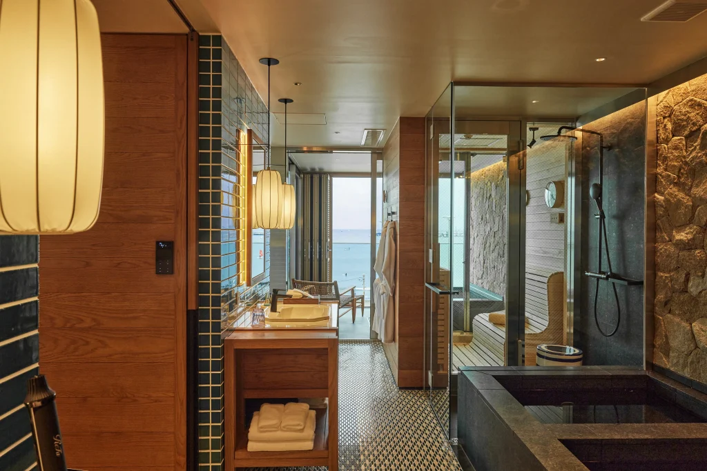 — 客室といえばバスルームの天然石の凹凸感、自然本来の色味と質感が非常に印象的でした。従来のラグジュアリーホテルにない素材をあえて使用したのはどういったこだわりがあるのでしょうか。