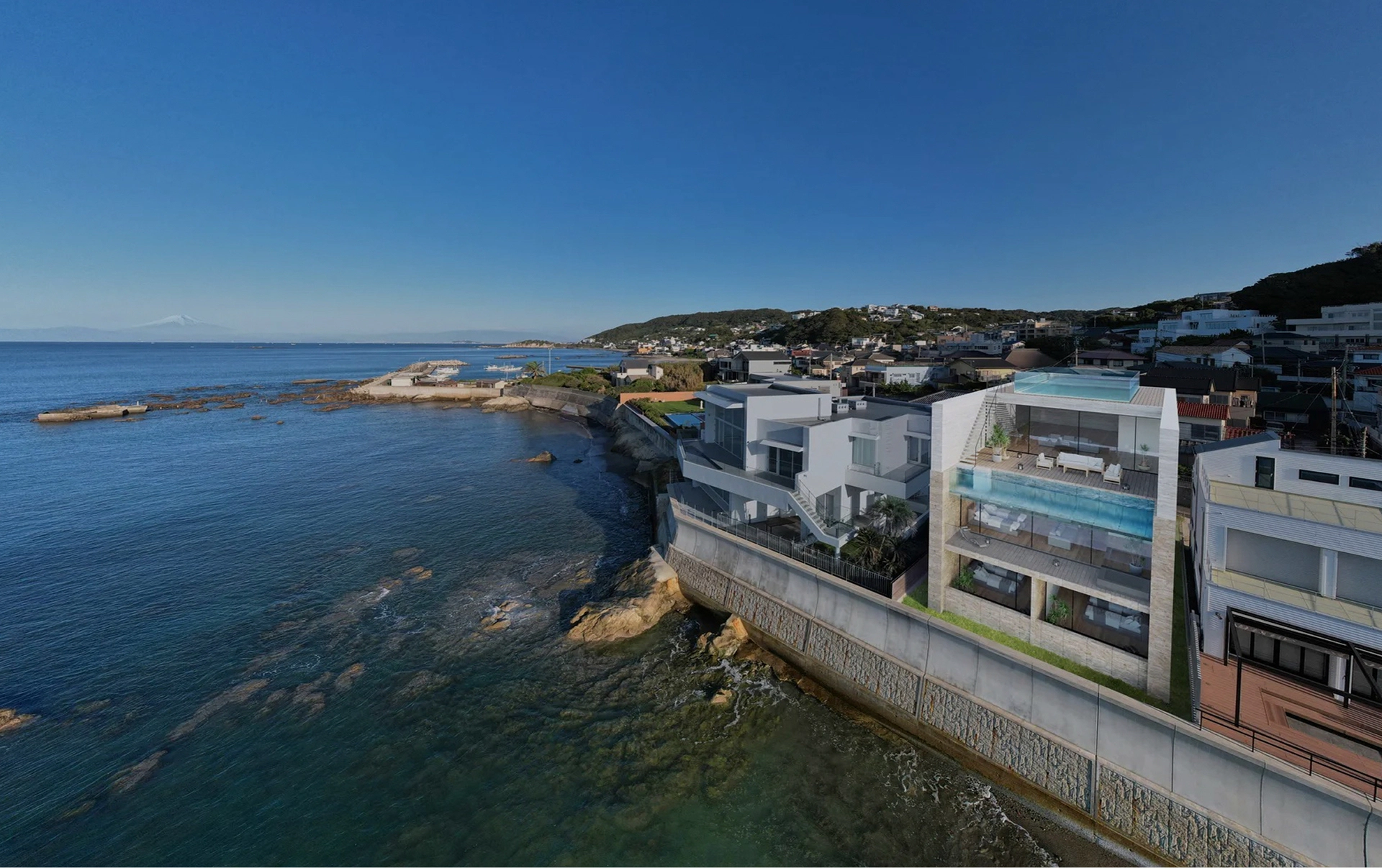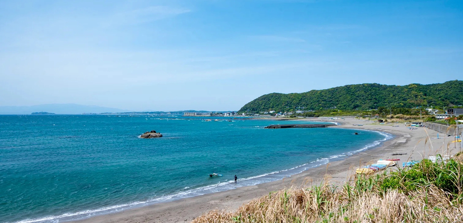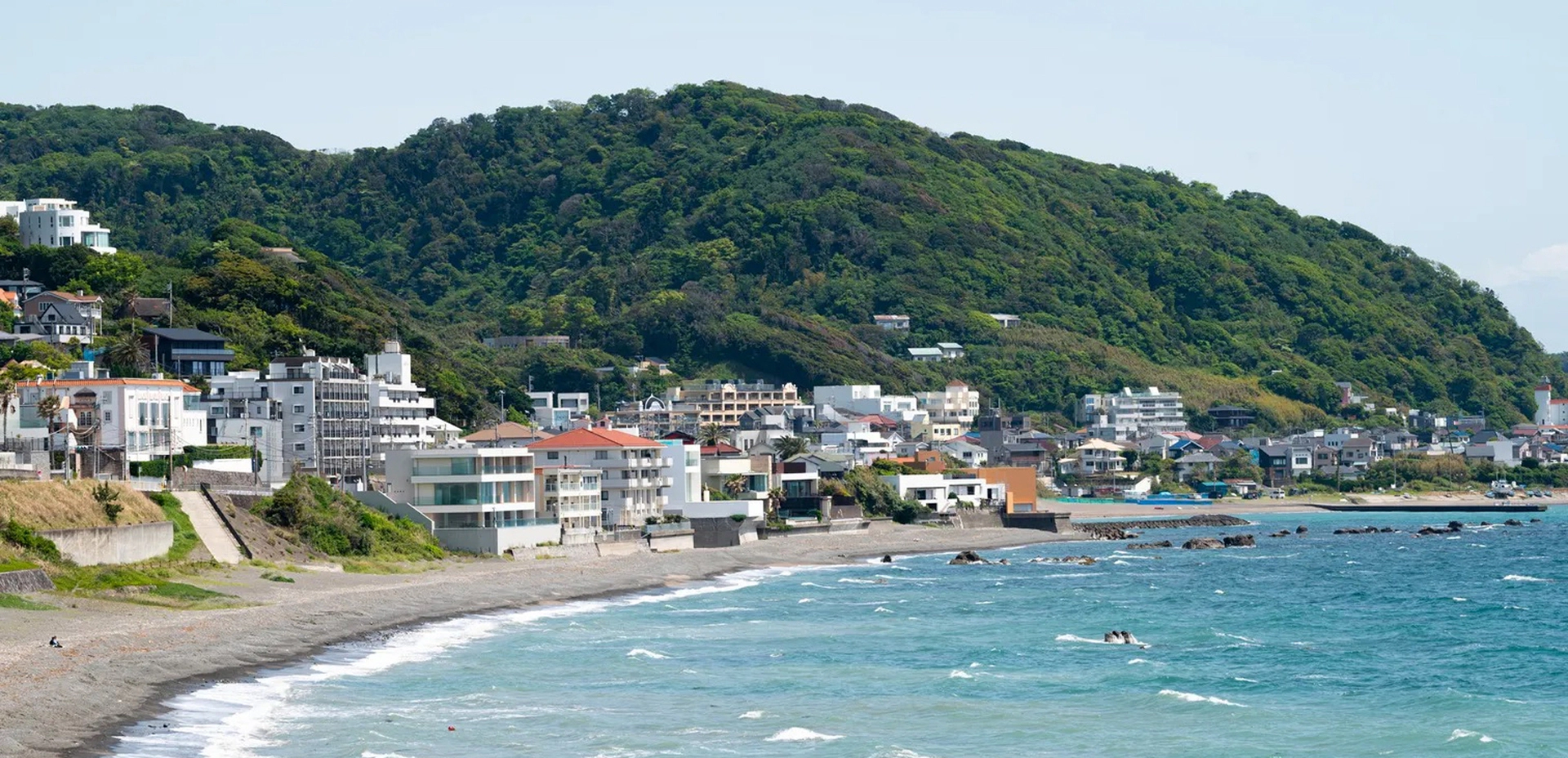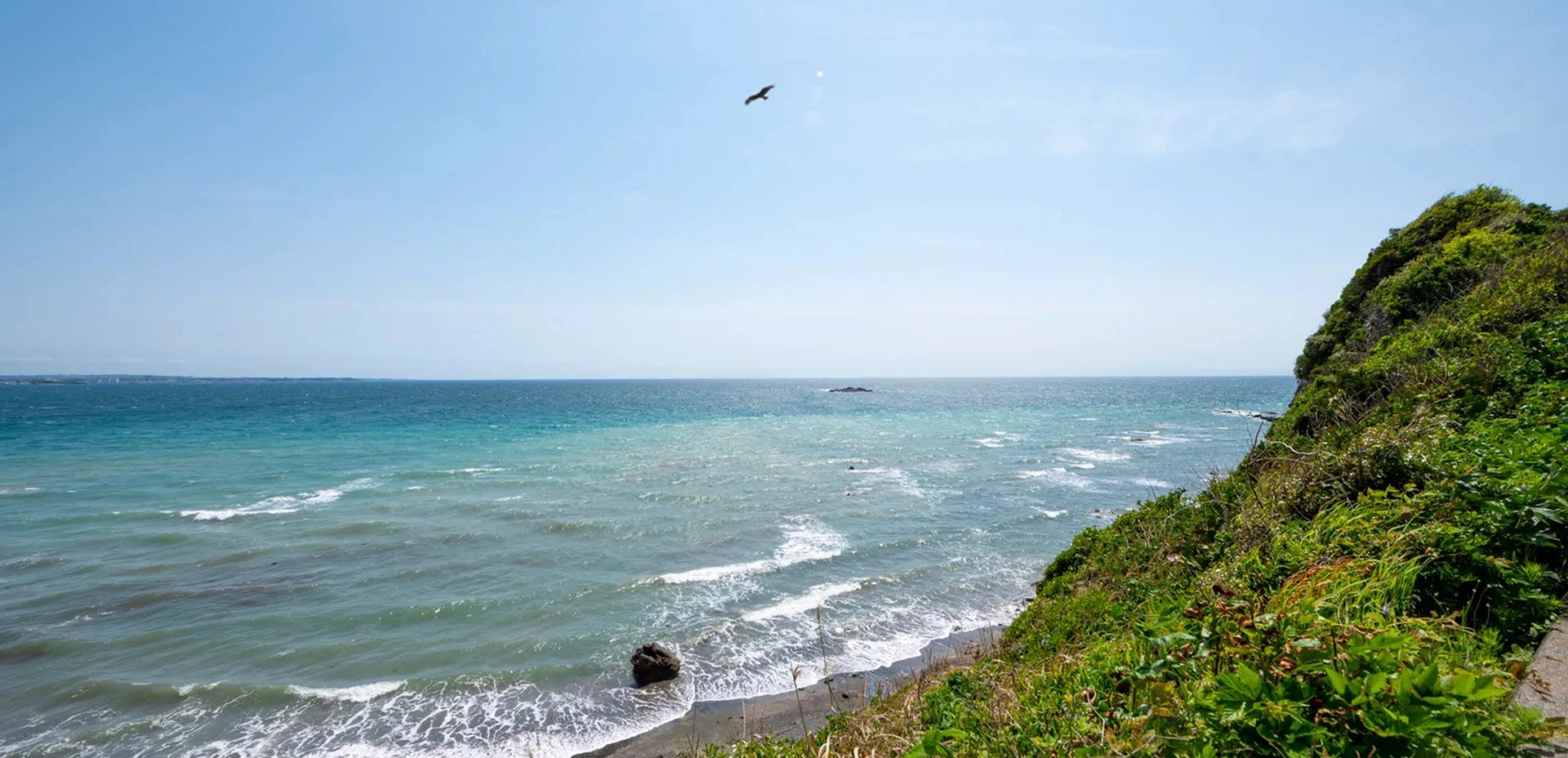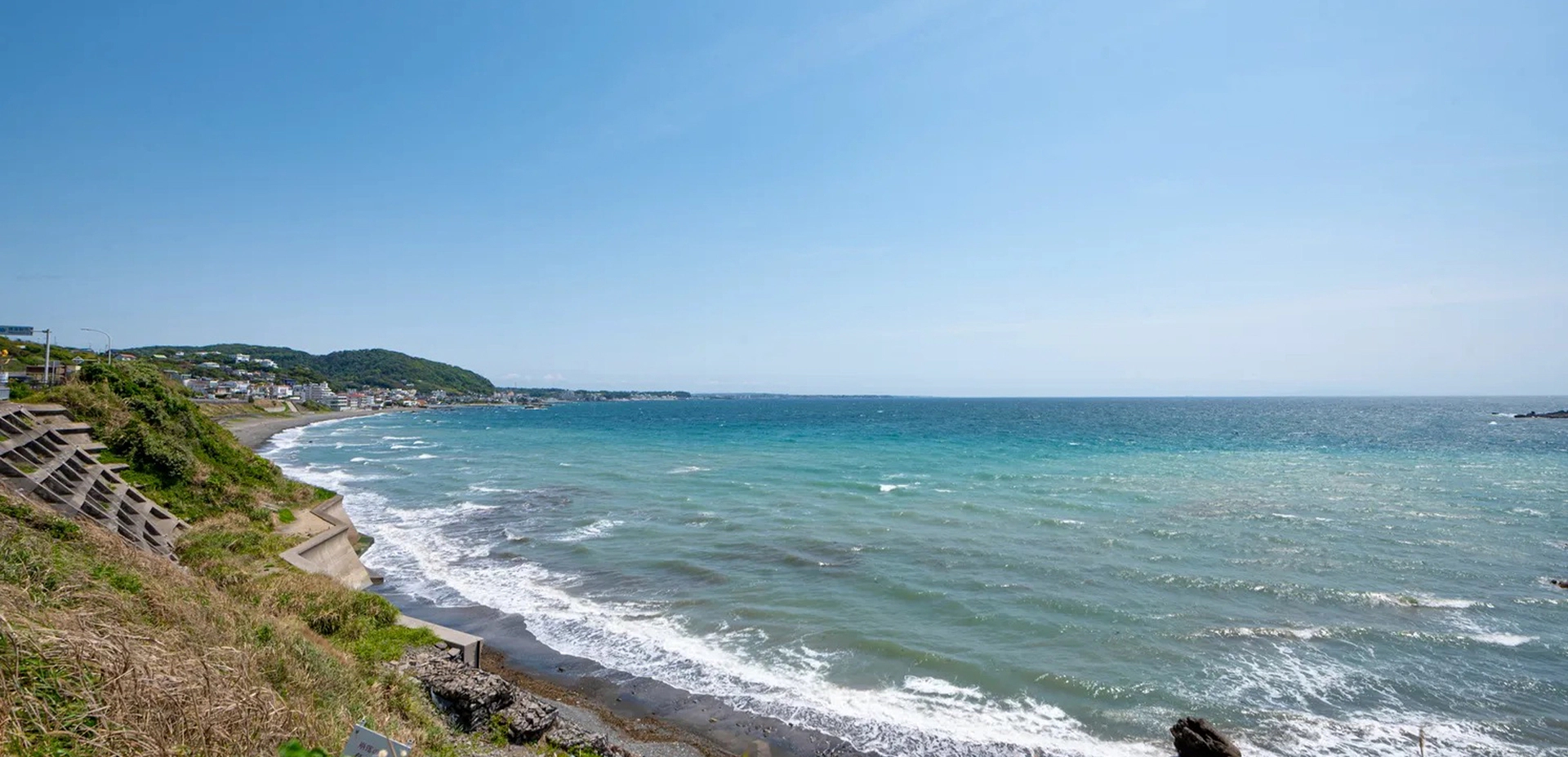 A rock formation jutting out to sea, overlooking the Shonan coastline