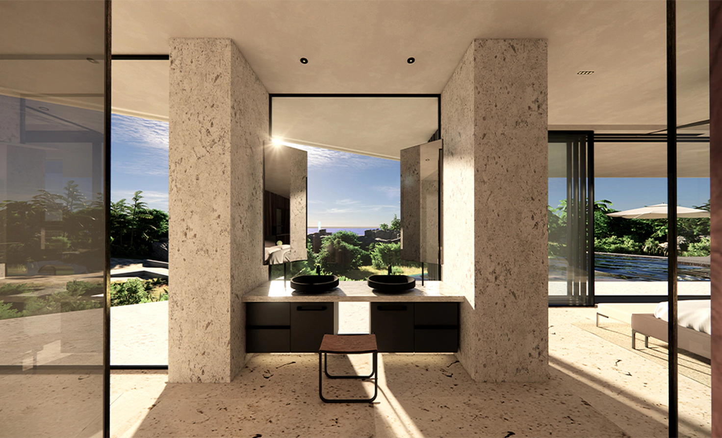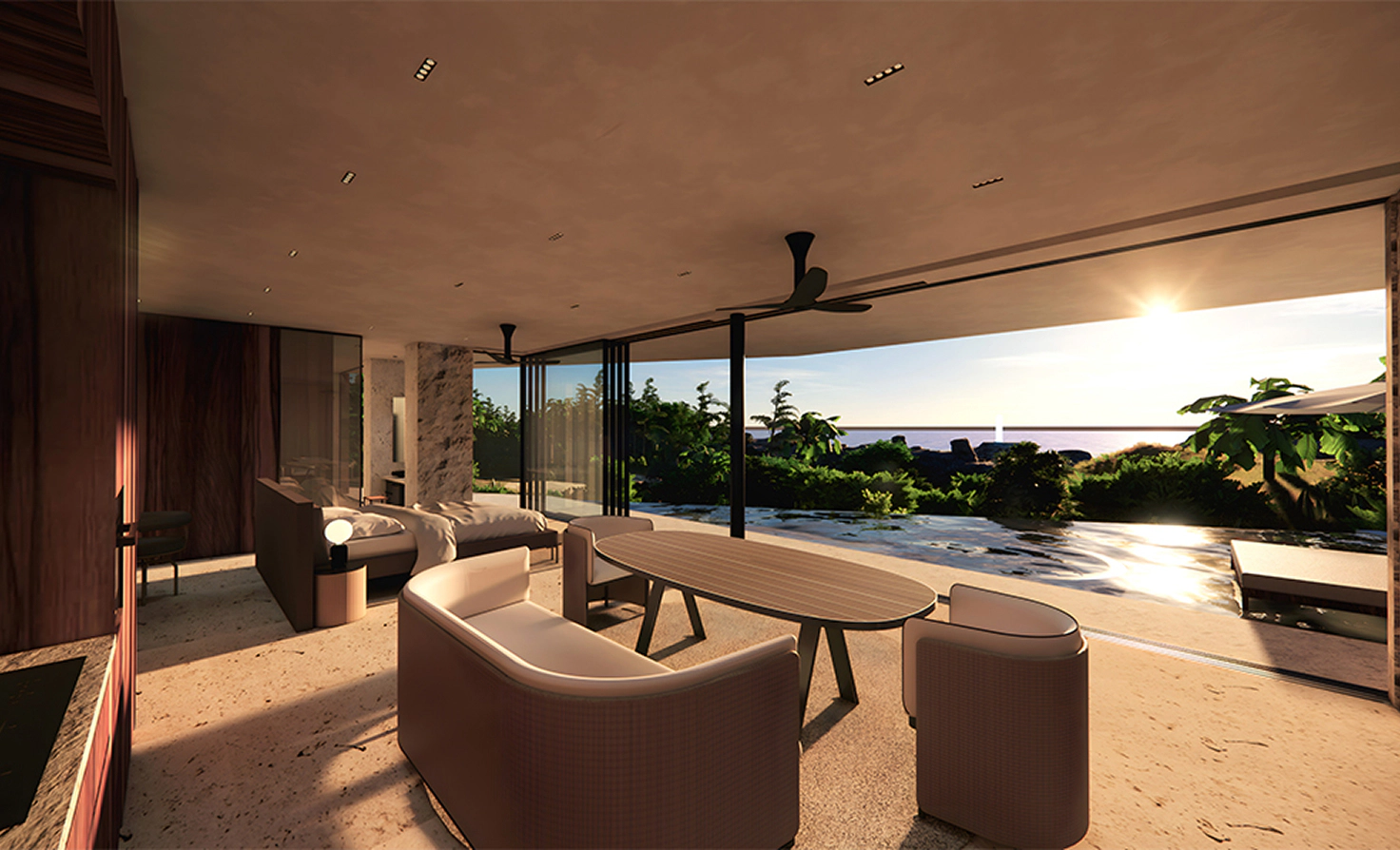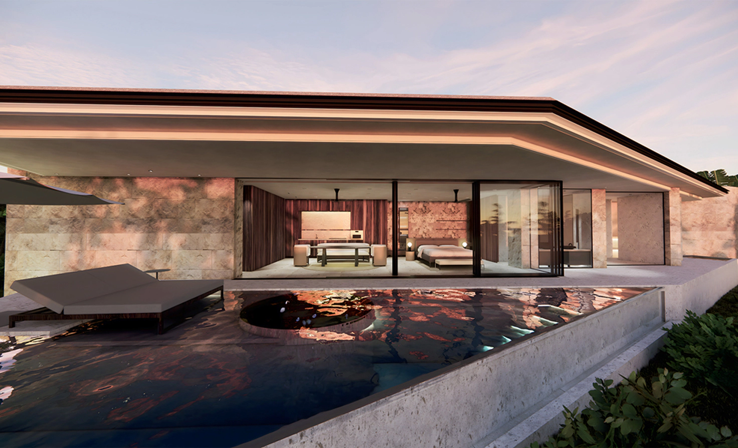Riccardo Tossani's design sense shines through in this conceptual design that blends with nature, incorporating modern elements while making generous use of Ryukyu limestone.