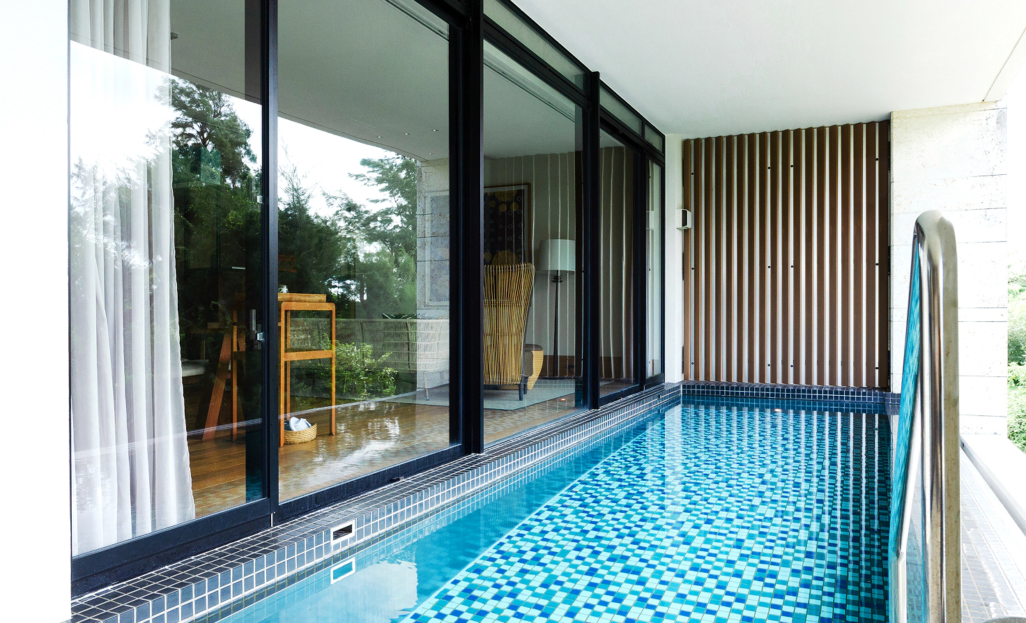 Even as you relax by the pool, the gentle sound of lapping waves softly accompanies you.