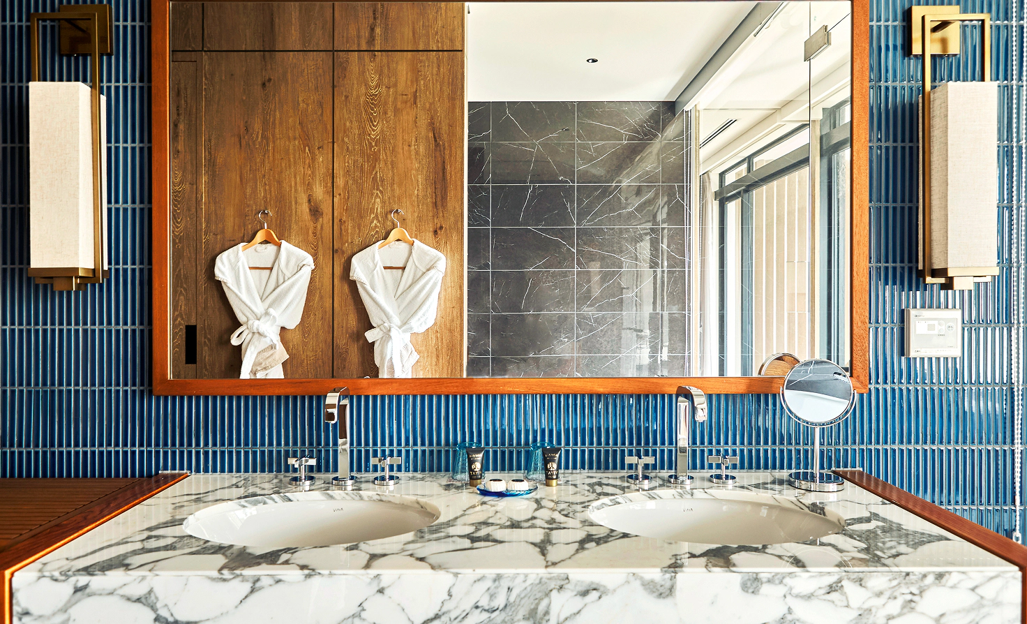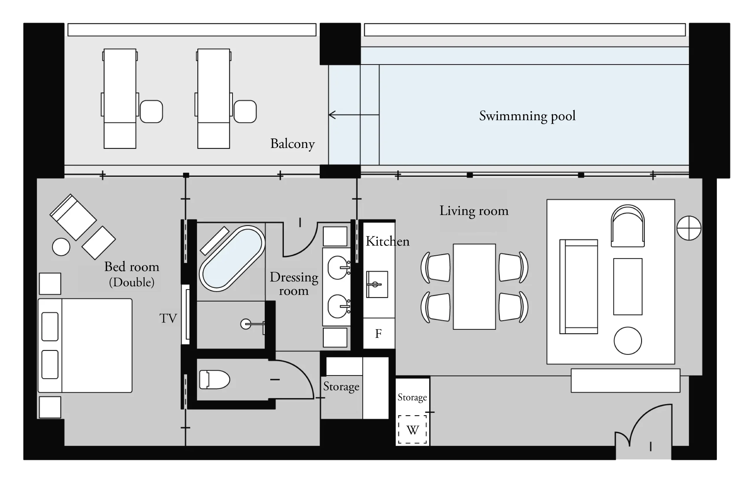 Even as you relax by the pool, the gentle sound of lapping waves softly accompanies you.