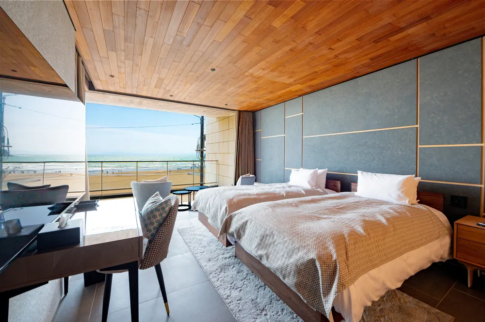広々としたベッドルームは、テラス直結で海を間近に感じられるつくりとなっています。由比ヶ浜の波の音を感じながら至福のひと時をお楽しみください。