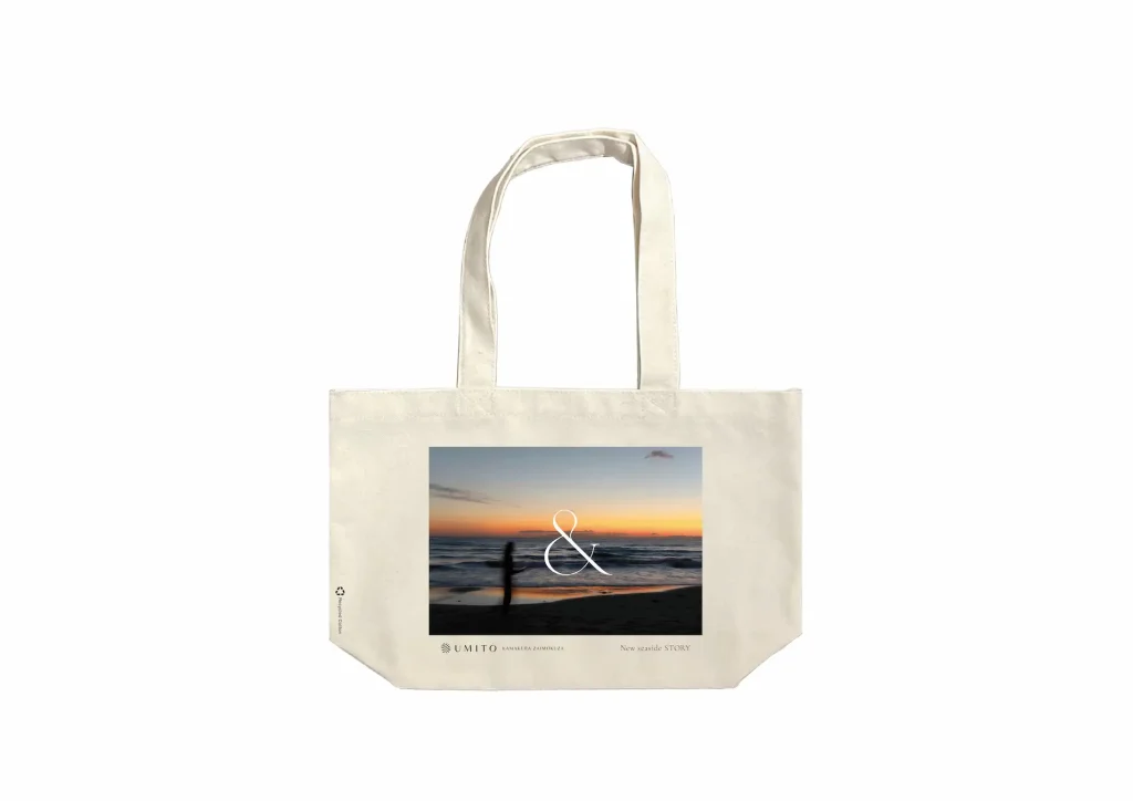 UMITOは、「海と共に過ごす」というコンセプトのもと、沖縄恩納村、鎌倉腰越、鎌倉材木座など全国各地に宿泊施設を展開しています。このたび製作したオリジナルトートバッグは、宿泊者がUMITOでの体験を日常にも持ち帰り、SDGsへの意識を高めるきっかけとなることを目指しています。