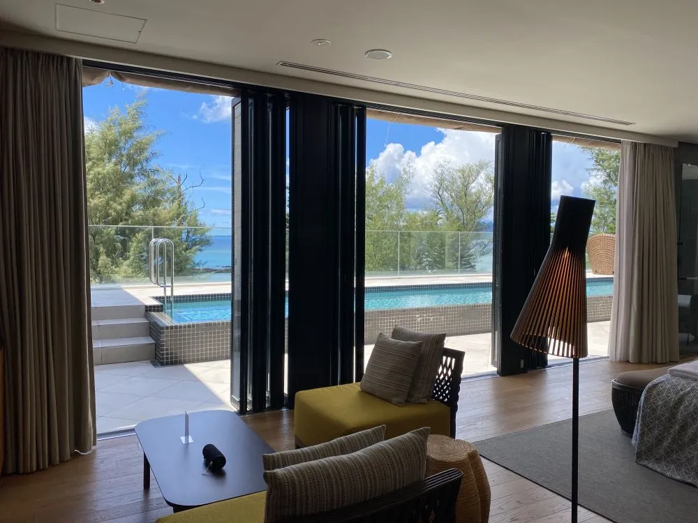 部屋にある大きな窓からは、「UMITO」のネーミングに相応しい、空と海と繋がったような開放感のある絶景を眺めることができます。海が近いので聞こえてくる波の音にも癒されました。目一杯観光するのも楽しいですが、この景色を噛み締めるのもいいな、と思える贅沢な空間でした。